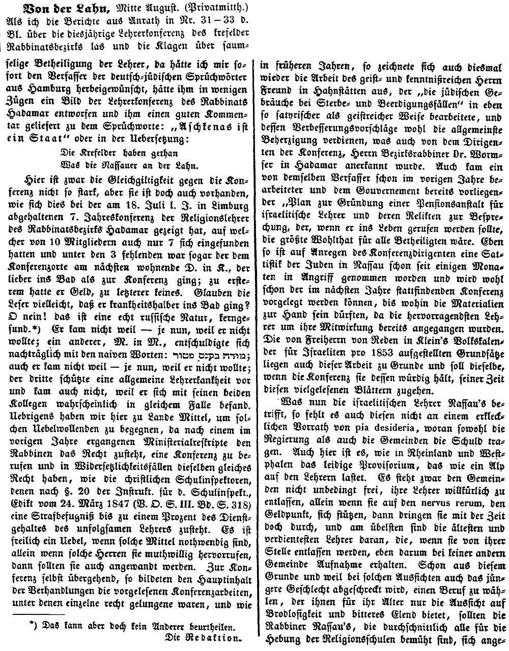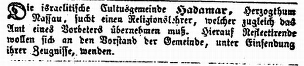 Lehrer Kahn aus Hadamar genannt (auch genannt in Berichten von 1847).
