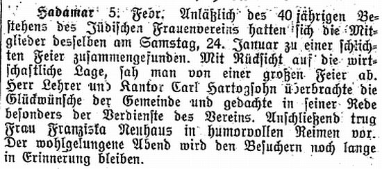 konnte 1908 sein 25-jähriges, 1923 sein 40-jähriges Ortsjubiläum in Hadamar