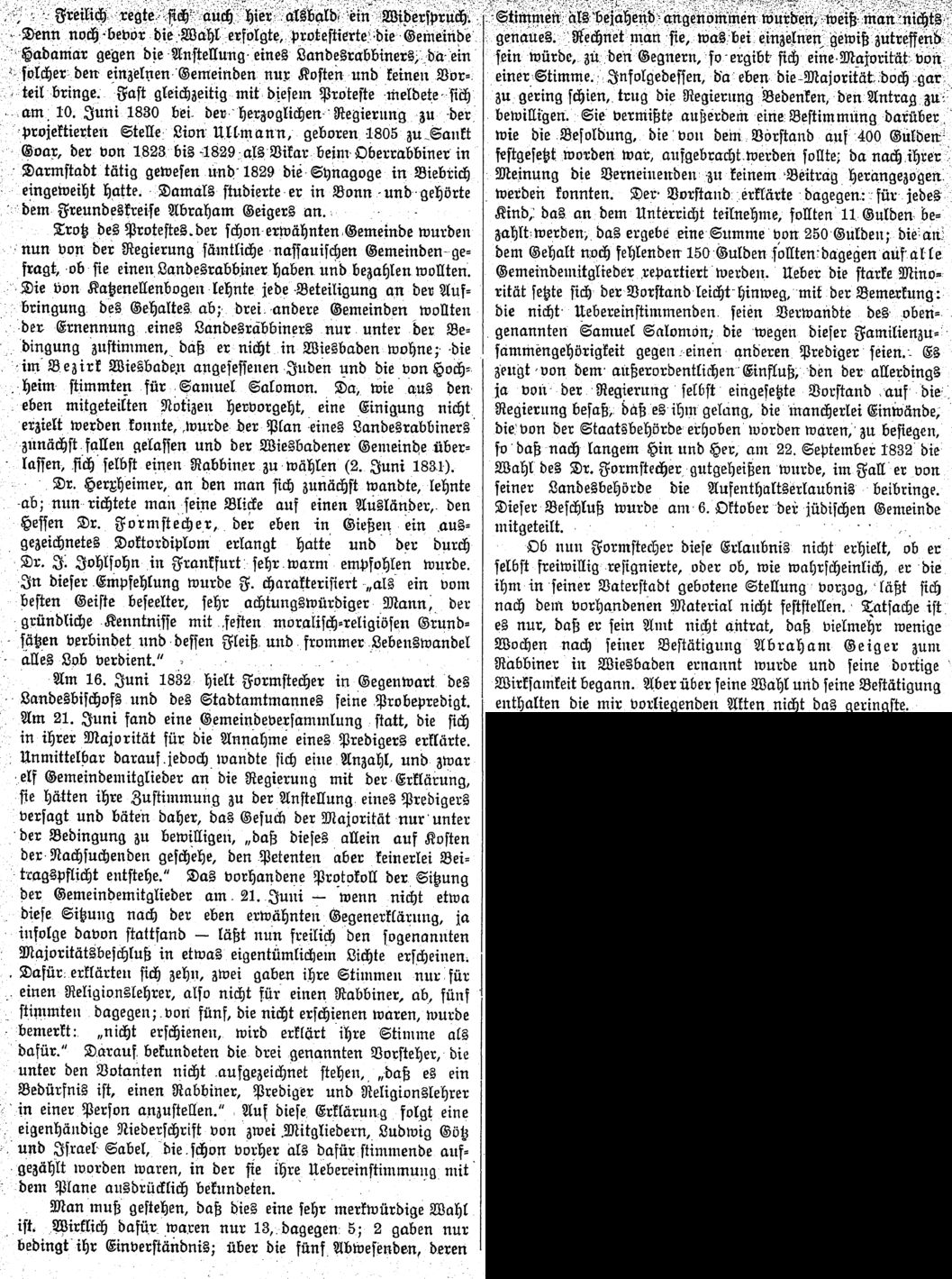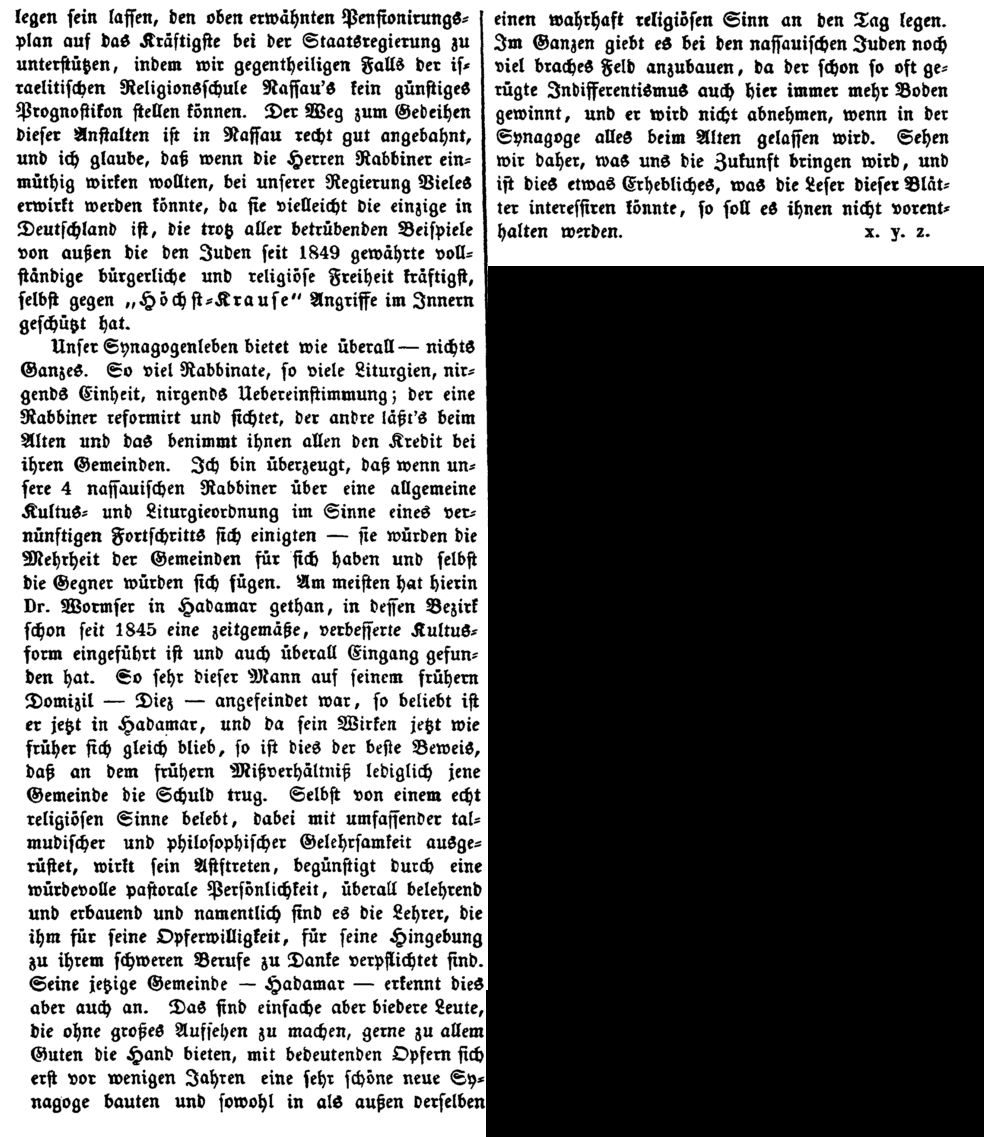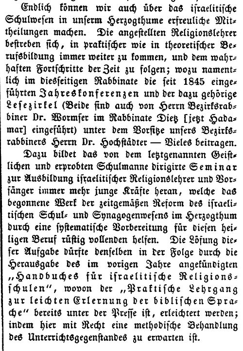 zugeteilt. Der dortige Rabbiner Dr. Salomon Wormser (geb. 1814 in Limburg, gest.