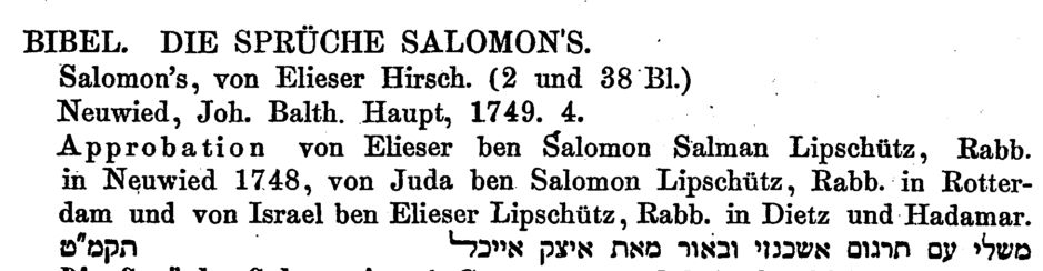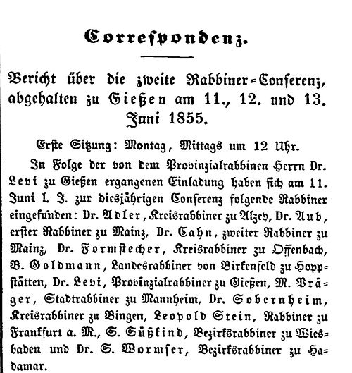 ben Moses (siehe unten). Mitte des 19. Jahrhunderts verlegte Rabbiner Dr.