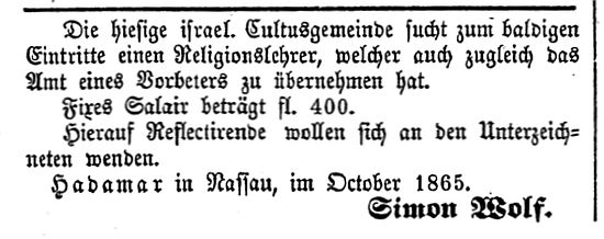 1841/1842 Aron Salomon, um 1862/1874 Simon Wolf, um