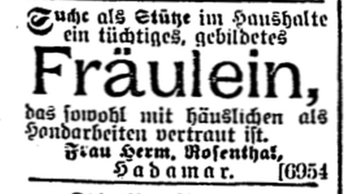 als Hausmädchen bei einer jüdischen Familie in Hadamar tätig. Mit Blick