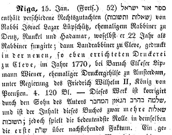 anderem Rabbiner Israel ben Elieser Lipschütz (siehe unten) und Rabbiner Chajjim