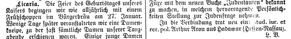 1881/1888 H. Löwenstein, S. Stern, um 1892 L. Liebmann, H. Liebmann, W. Aron, um