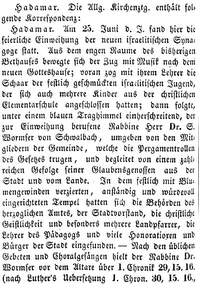 Wormser den Sitz des Rabbinats von Diez nach Hadamar. Er starb 1858. 1860 wurde