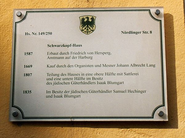 in Harburg lebte und sich dort am Ufer der Wörnitz ein für die