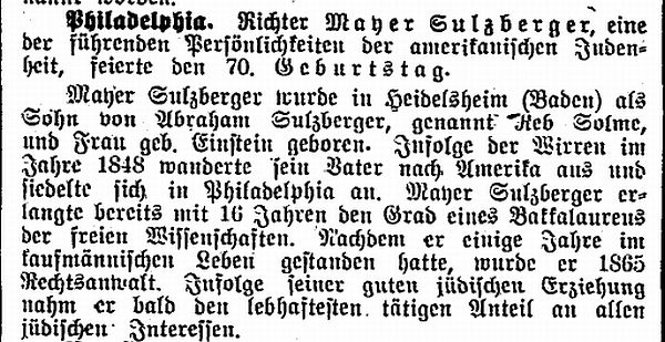 in der Zeitschrift "Der Israelit" vom 24. Dezember 1889:
