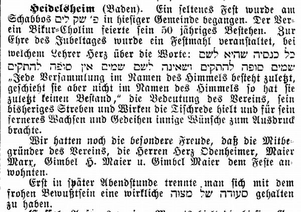 1800 21 jüdische Familien in Heidelsheim gezählt. 1809 werden als