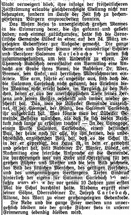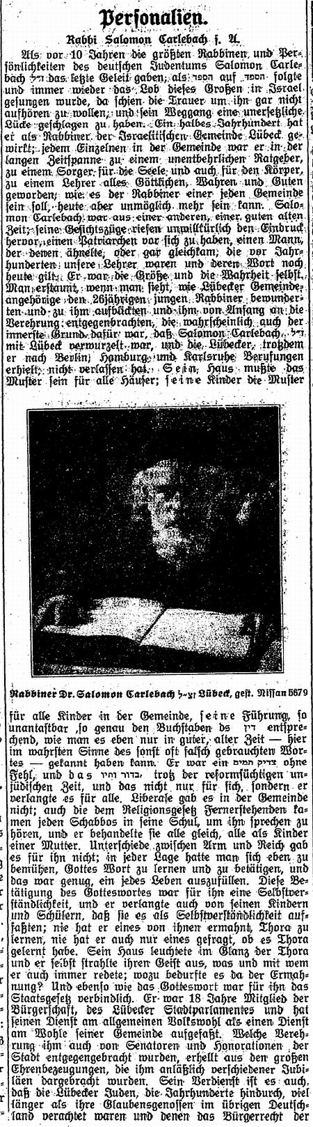 des Herrn Rabbiners Dr. Salomon Carlebach in Lübeck, 1910. |