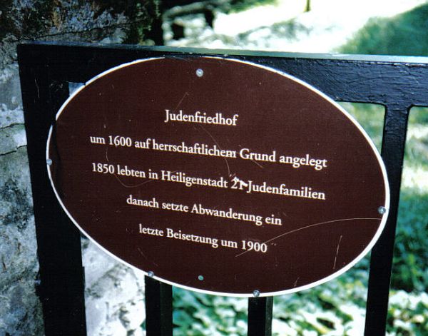 angelegt - 1850 lebten in Heiligenstadt 21 Judenfamilien - danach