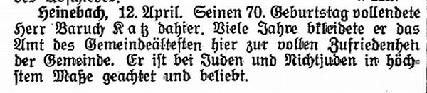 Heinebach. Im Haus von Baruch und Sara Katz war die Familie alltäglich mit