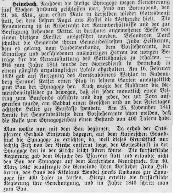 Hesse-Nassau. Established after 1800, the community opened a synagogue in 1843