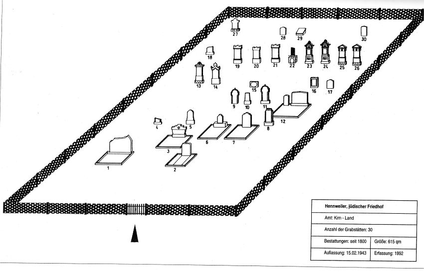 in einem Kartenauszug). Seit 1895 wurden auch die verstorbenen Juden aus Bruschied in Hennweiler beigesetzt. Die