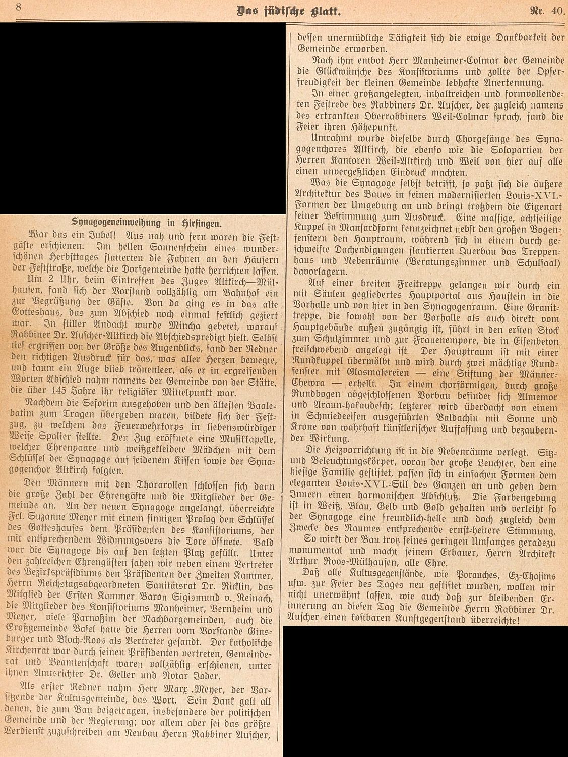 unten) noch keine weiteren Bericht zur jüdischen Geschichte in Hirsingue