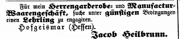 Bericht unten). 1863 war ein Mitglied der Familie Heilbrunn Mitgründer des