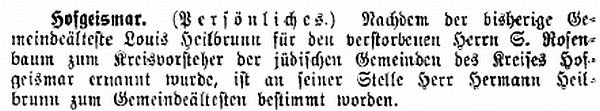 falschen Beschuldigungen. Der Gemeindevorsteher Hermann Heilbrunn verstarb