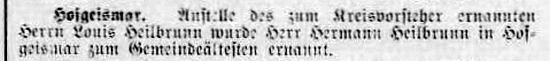 von insgesamt 5.043 Einwohnern), war der Gemeindevorsteher Louis Heilbrunn (bis