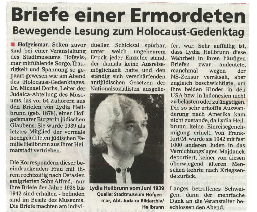 den Briefen von Lydia Heilbrunn geb. Freudenthal aus Hofgeismar