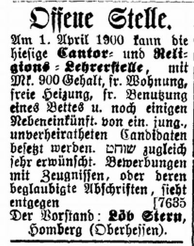 letzten war Max Lamm, der von Homberg nach Frankfurt verzog. Auch er die mit