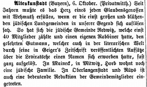 a.d. Rodach, danach zum Distriktsrabbinat Burgkunstadt.