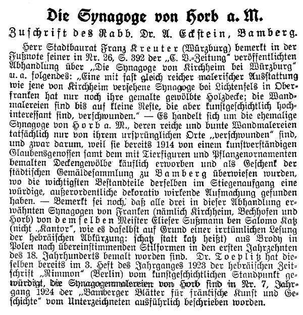 Frankfurter Israelitischen Familienblatt vom 9. Februar 1912: "Horb