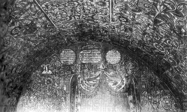Fläche der Tonnendecke ziehen sich stilisierte Blumen- und