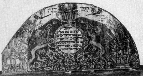Etrogfrüchten und Datteln. Über den trompetenden Löwen Schofarhörner