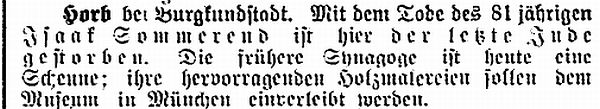 Zum Tod des letzten jüdischen Einwohners in Horb (1912)