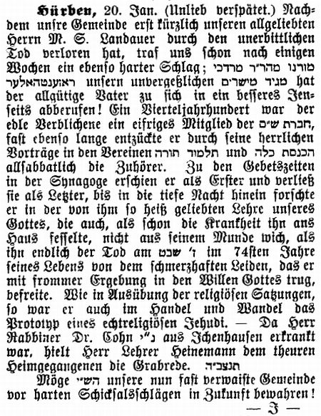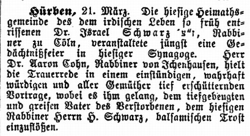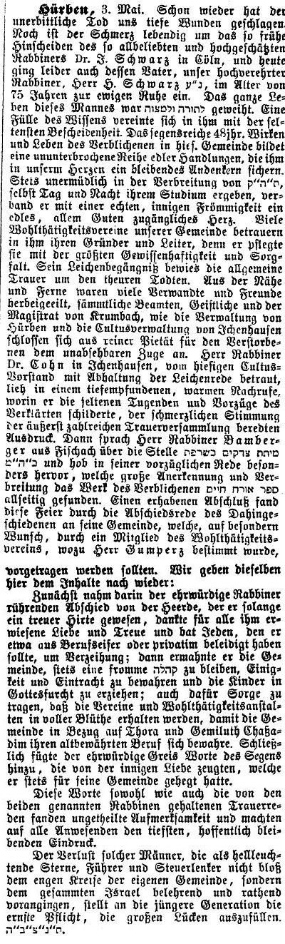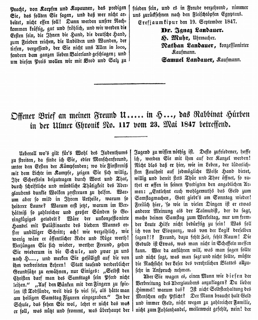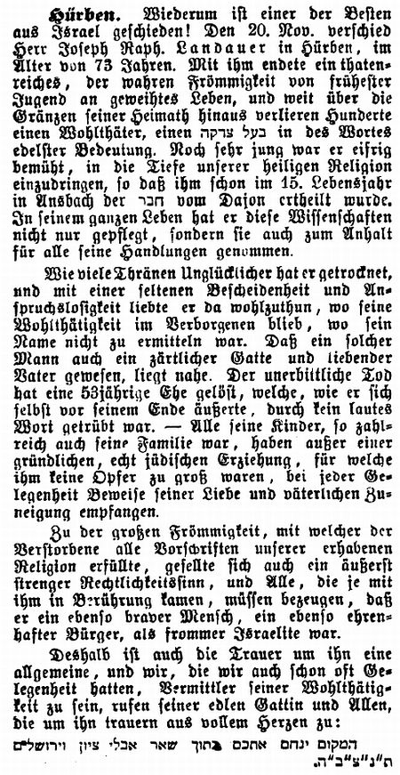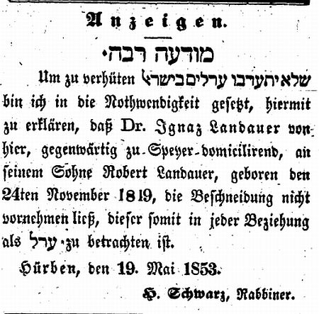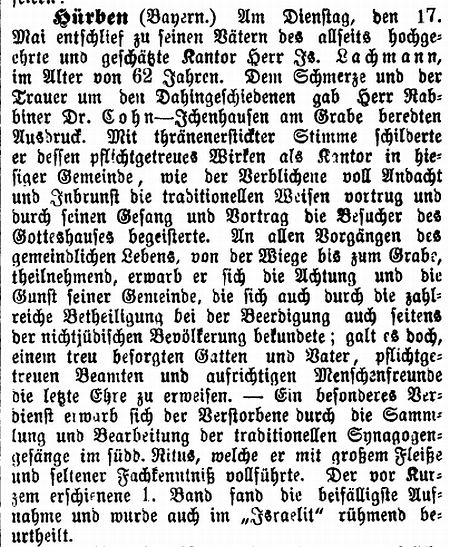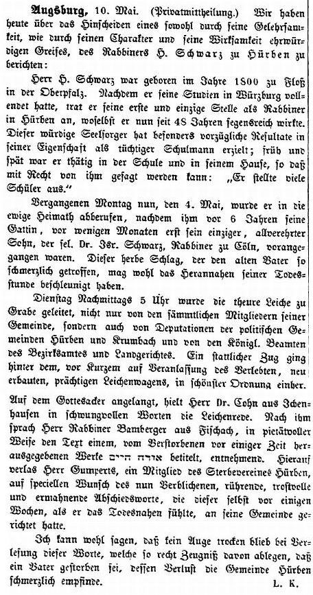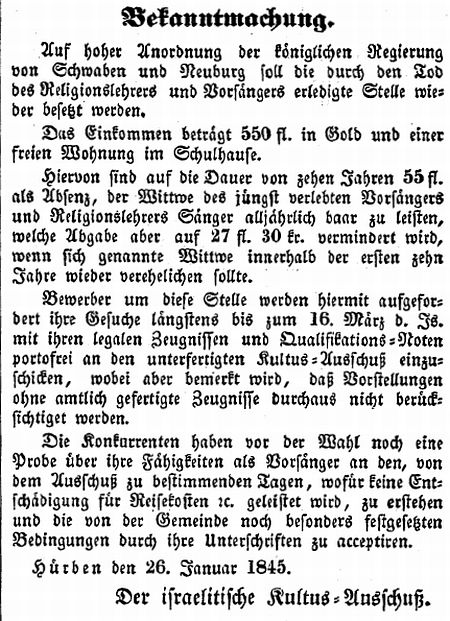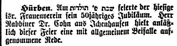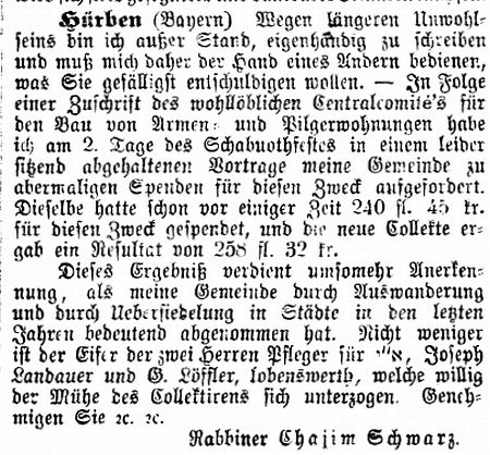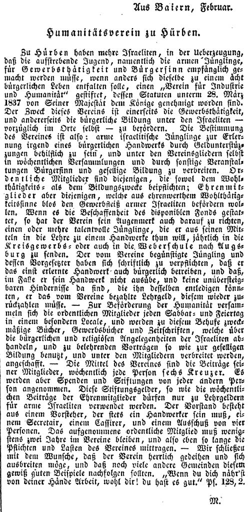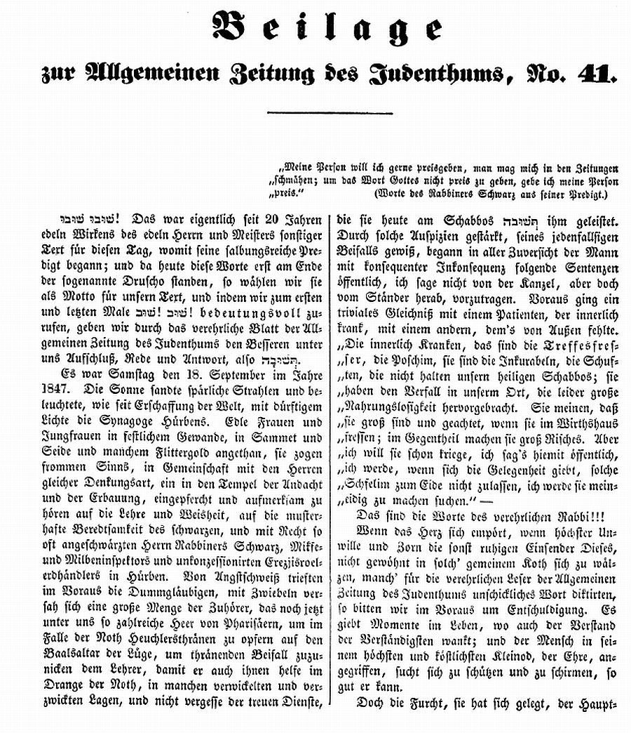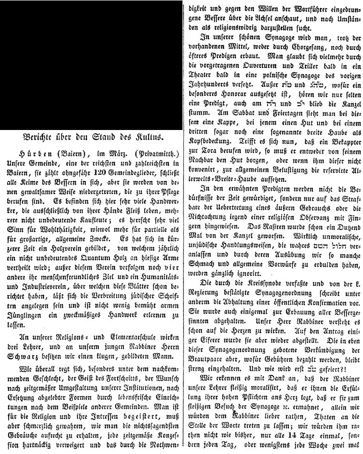 in der "Allgemeinen Zeitung des Judentums" vom 7. Mai 1842: "Hürben