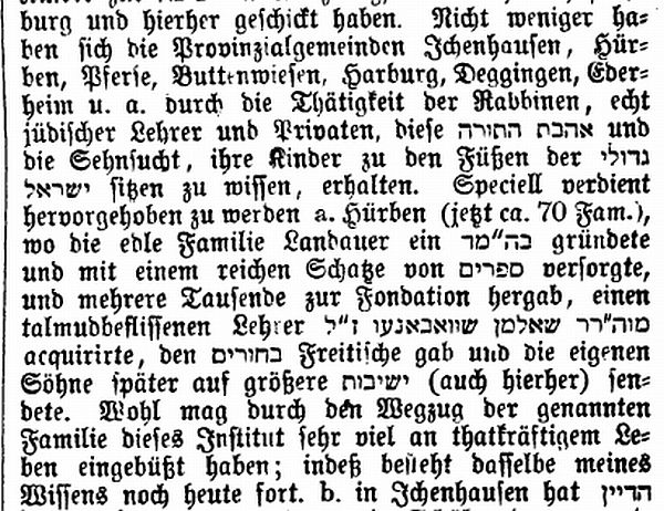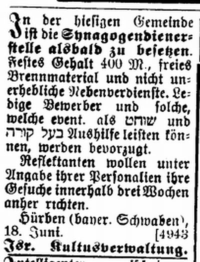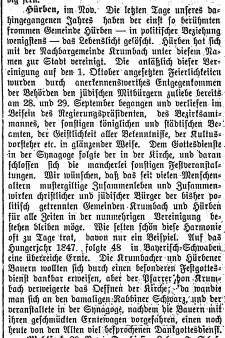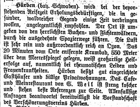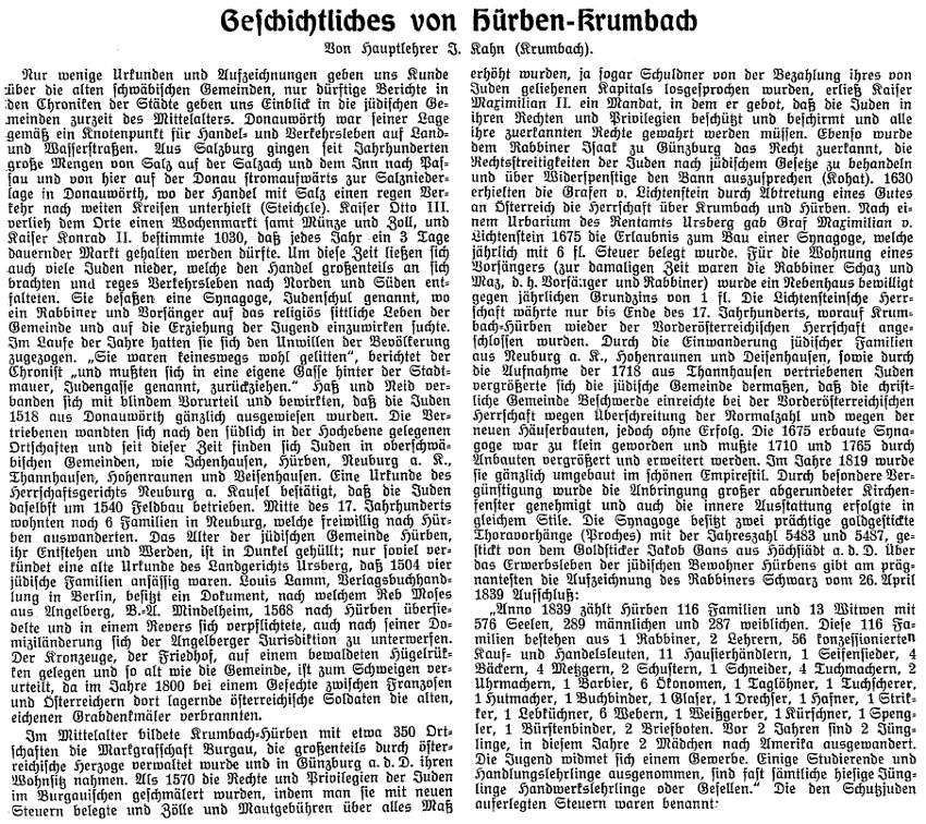 Beiträgen zur jüdischen Geschichte in Hürben / Krumbach wurden in jüdischen Periodika