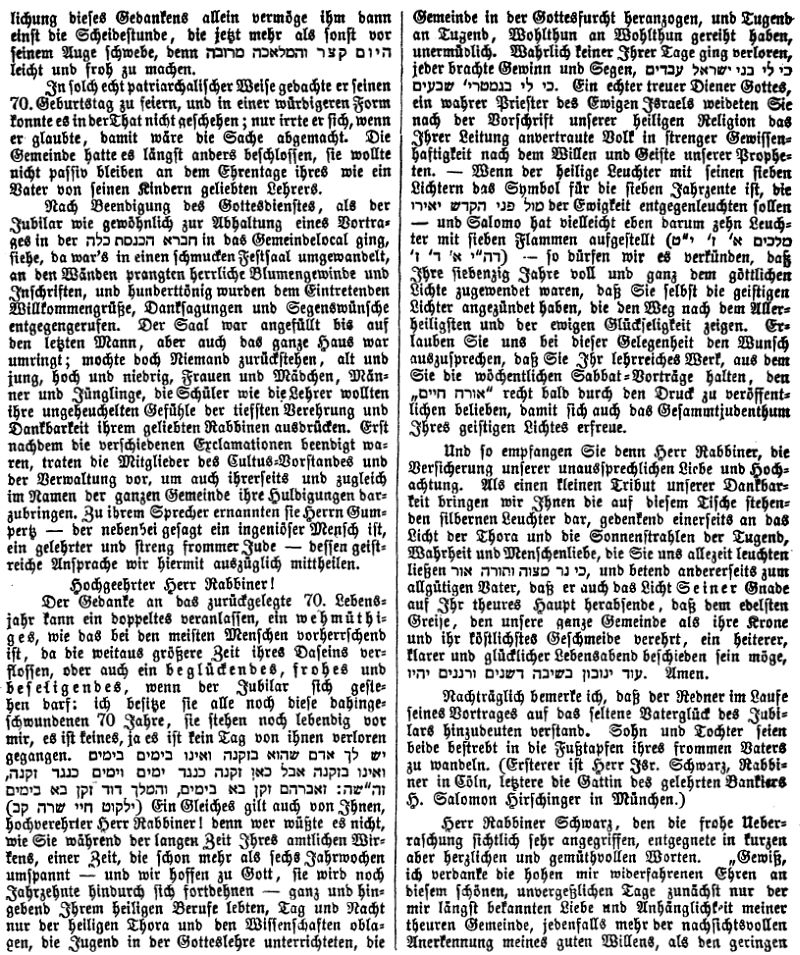 Rabbiner Herrn Schwarz besitzen wir einen klugen, gebildeten Mann.