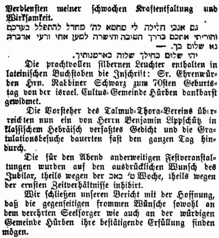 des Judentums" geäußerte Kritik richtet sich an konservativ-orthodoxe Kreisen, die im Gemeindeleben Hürbens nur sehr