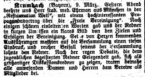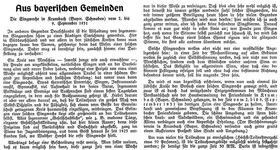1931: "Aus bayerischen Gemeinden. Die Singwoche in Krumbach (Bayerisch