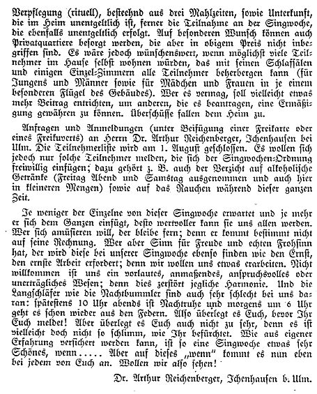 Kreise der Versuch einer solchen Singwoche gewagt wird, und zwar ist es