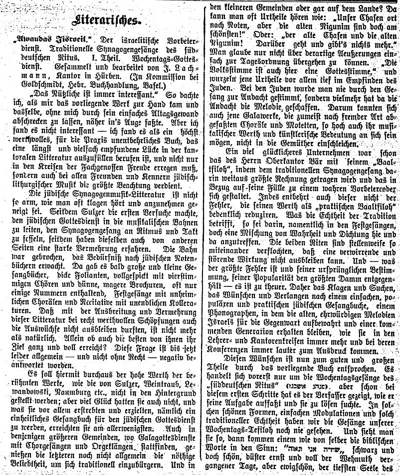 in der "Bayerischen israelitischen Gemeindezeitung" vom 1. Juli