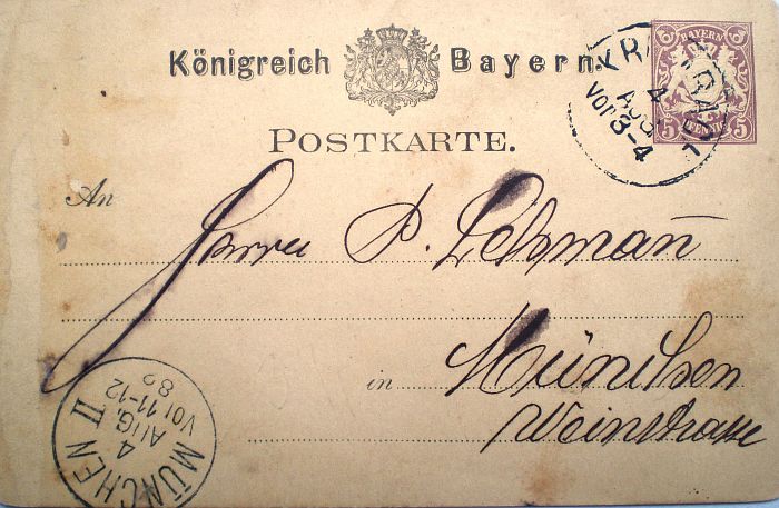 Freikuverts) an Herrn Dr. Arthur Reichenberger, Ichenhausen bei Ulm. Die