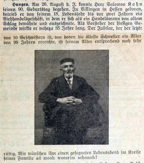Lehrer Salomon Salomonsohn. Um 1865 wird als Lehrer aus Hungen bei