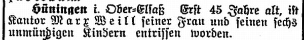 Zum Tod des Kantors Marx Weill 1910