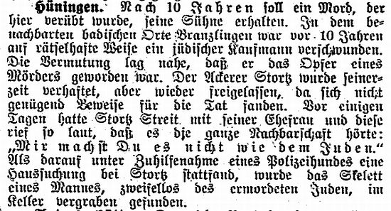 "Hüningen. Nach 10 Jahren soll ein Mord, der hier verübt