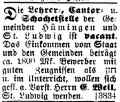 Ausschreibung der Stelle des Religionslehrers, Vorbeters und