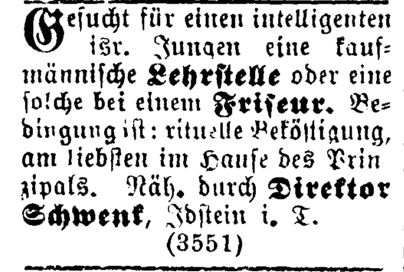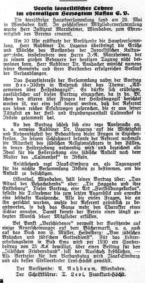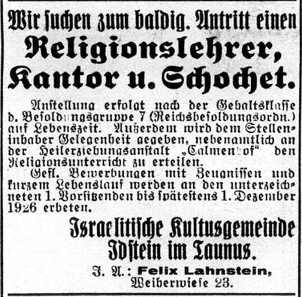 jüdische Lehrer der Gemeinde Idstein zuständig. Es gab für die jüdische