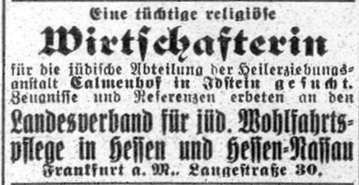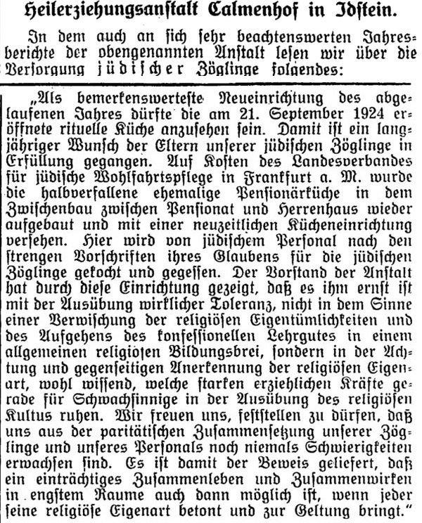 'Kalmenhof'; ältere Bezeichnung "Idiotenanstalt") eine jüdische Abteilung. Der