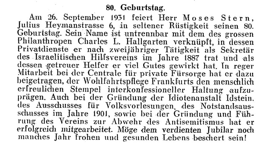 namhaften Stiftungskapitals der jüdischen Familie Charles Hallgarten