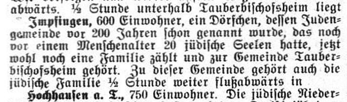 Aus einem Reisebericht über die jüdische Gemeinde Impfingen (1931)