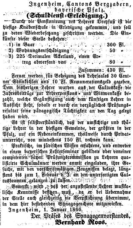 1860 in Nachfolge des damals pensionierten Lehrers Dreyfuß) sowie in der