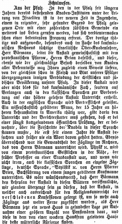 Bärmann und den protestantischen Pfarrer geleitetes "Knabeninstitut