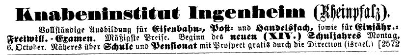 Nach 1864 bestand in Ingenheim ein gemeinsam durch den jüdischen Oberlehrer