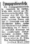 der zugleich den Synagogenchor zu leiten hatte (siehe unten Ausschreibung von