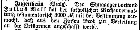 Gemeindevorsteher waren 1903: J. Weil. B. Marx und J. Haas.