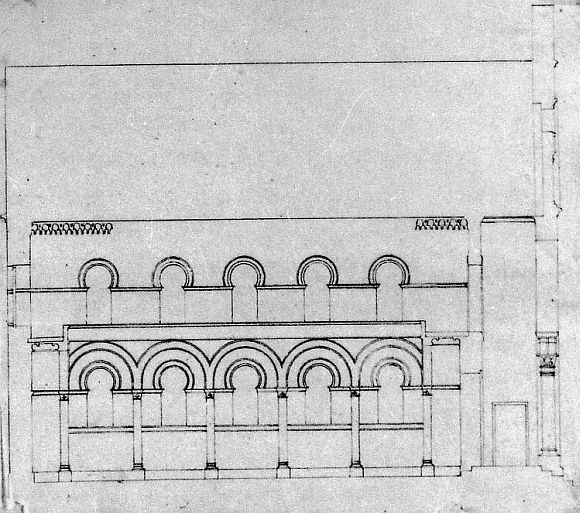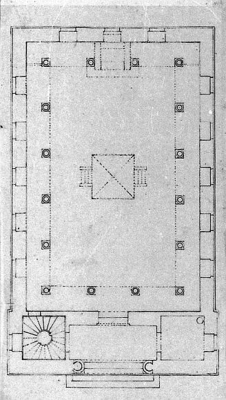 Synagoge: Plan von Friedrich von Gärtner, 1830. Rechts Ausschnitt des